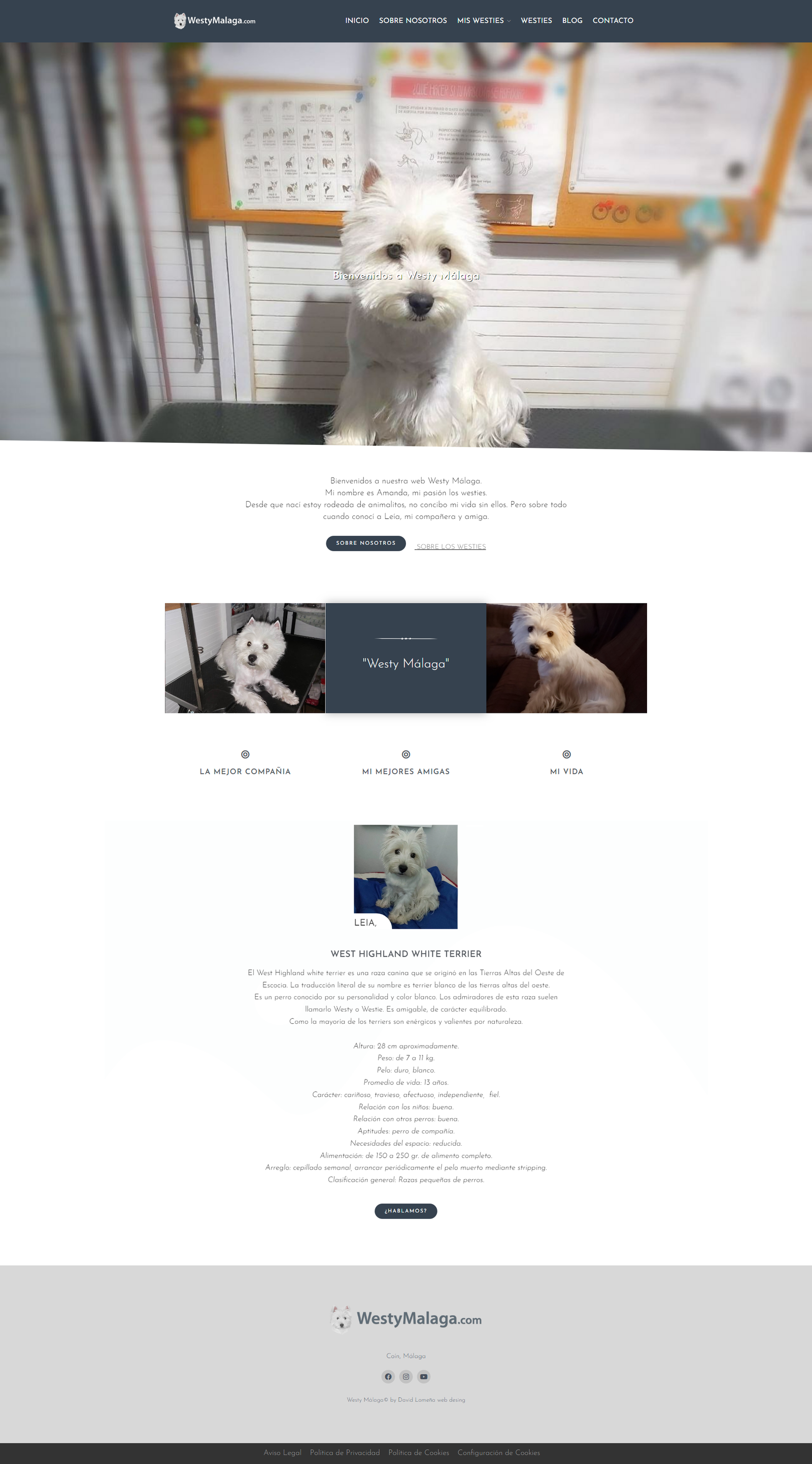 Westy Málaga es una web personal dedicada a la raza de perros Westies, creada y gestionada por Amanda Gómez.